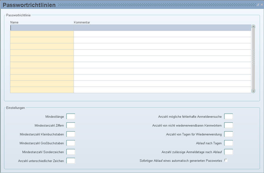 In dieser Maske haben Sie die Möglichkeit mehrere Passwortrichtlinien festzulegen.