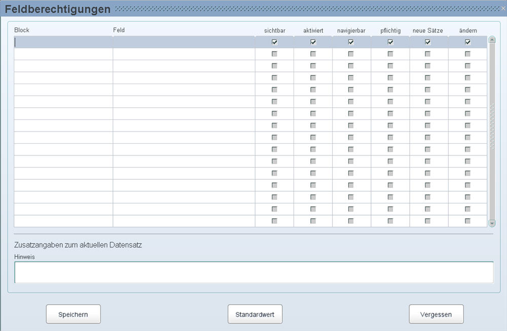 Mit diesem Button gelangen Sie zur Feldberechtigung.