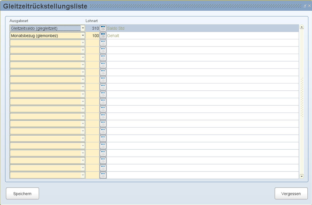 hier, dass Sie bei der Lohnart die Ausgabeart Gleitzeitsaldo ("glegleitzeit")
