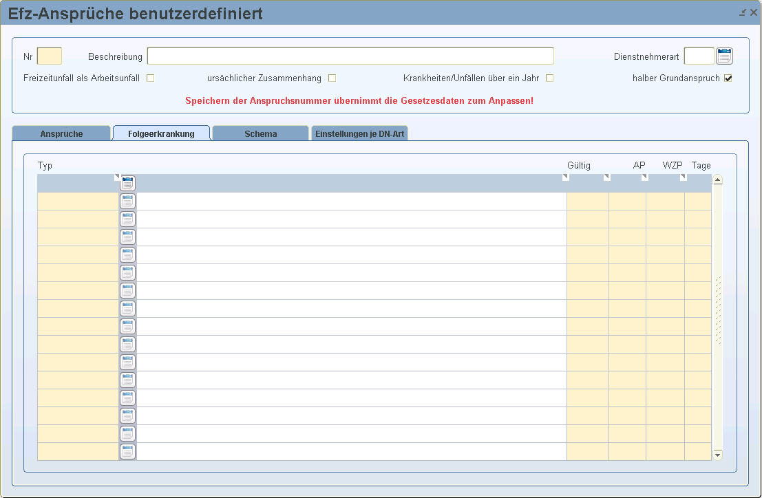 Hier tragen Sie den EFZ-Anpruch bzw. den Namen des EFZ-Typ ein, für den bei Folgeerkrankungen ein Zusatzanspruch besteht.