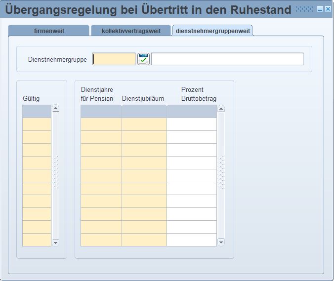 Hier wählen Sie die Dienstnehmergruppe aus, für welche Sie abweichende Übergangsregelungen definieren möchten.