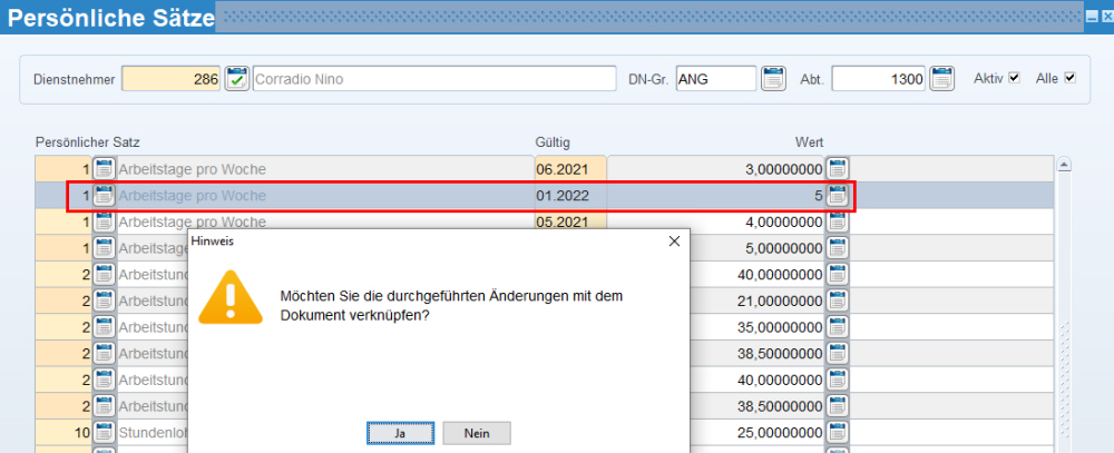 Dokument der Dienstvertragsänderung verknüpfen