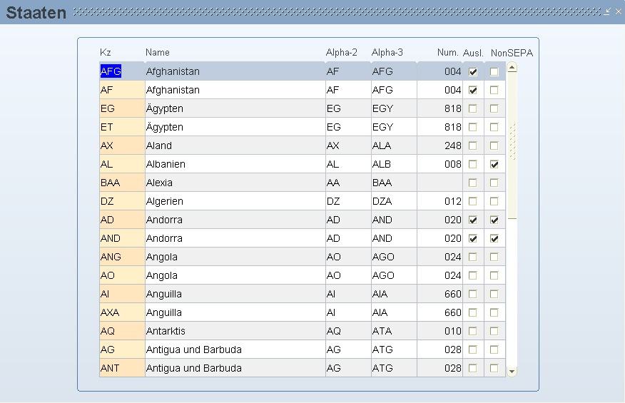 Die Staaten können Sie anschließend in folgenden Masken auswählen: