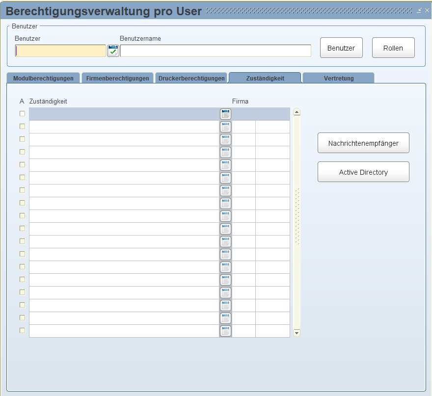 Wählen Sie hier die Zuständigkeit aus. Eine Auswahl ist nur dann möglich, wenn dieser User in der Maske "Nachrichtenempfänger" auch als Prüfer gekennzeichnet ist.