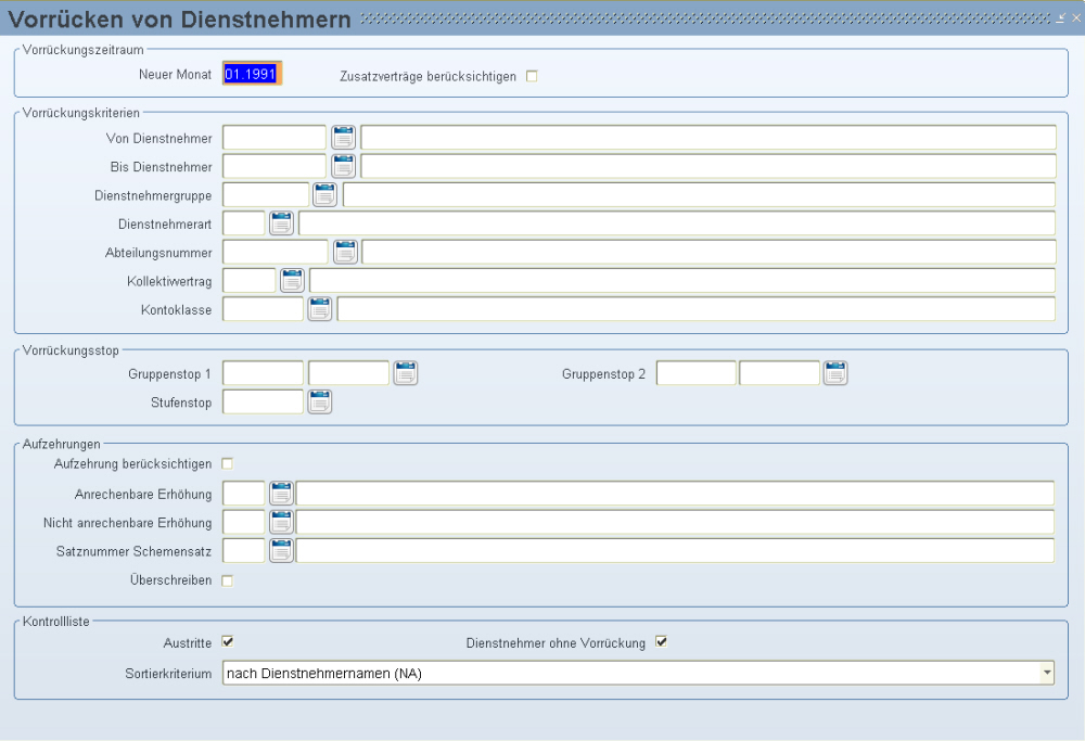 In dieser Maske führen Sie die Vorrückung für die Dienstnehmer durch.