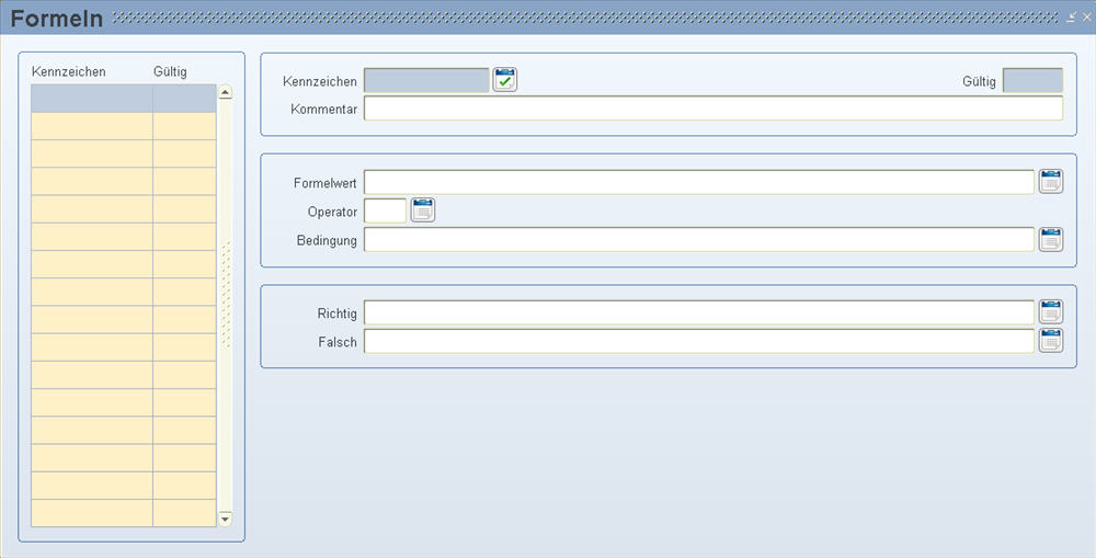 Die Sidebar ist eine Übersicht mit allen Formeln und dem zusätzlichen Ab-Datum. Beim Anlegen von einer neuen Formel wird diese inklusive Ab-Datum sofort in die Sidebar eingetragen. Hier können Sie auch nach dem Kennzeichen oder dem Ab-Datum abfragen. Auch haben Sie die Möglichkeit, alle Formeln im Überblick zu sehen.