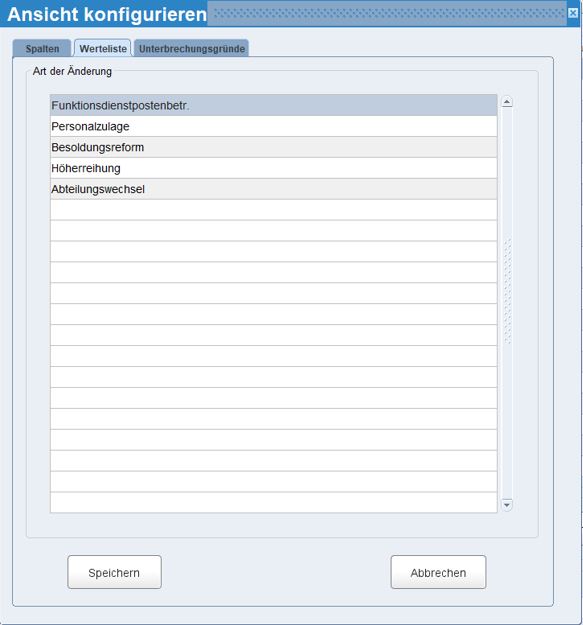 Hier sehen um welche Art der Änderung es sich zu diesem Datum handelt. Die möglichen Arten der Änderungen werden in "Ansicht konfigurieren" in der Werteliste festgelegt.
