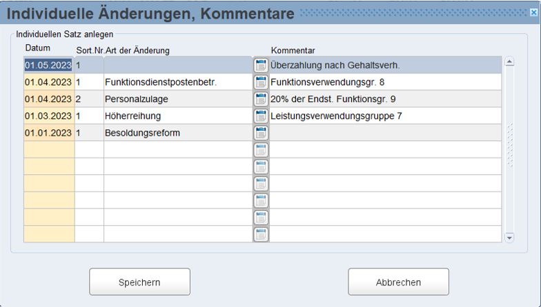 Hier sehen Sie das Datum, ab wann die Änderung in der Laufbahn erfolgt ist.
