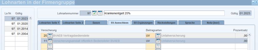 geben Sie in der Registerkarte „SV-Ausschluss“ für die Versicherung BVAEB