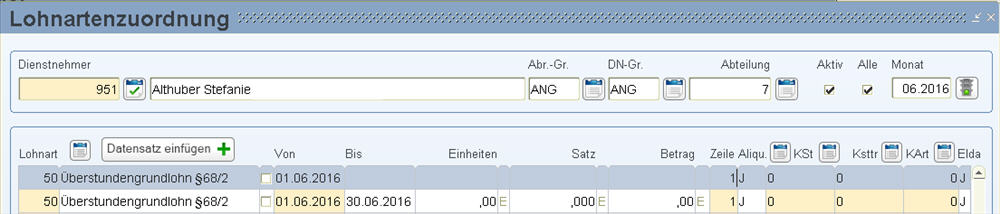 In diesem Fall wird die Lohnart 50 Überstundengrundlohn § 68/2 nur im Monat 06.2016 nicht gerechnet und für die Monate danach schon.