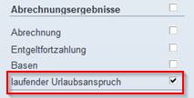 Ebenso muss die Checkbox "laufender Urlaubsanspruch"unter den Abrechnungsergebnissen in der Maske Kopiere Dienstnehmer aktiviert werden.