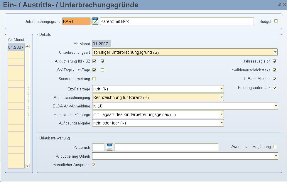 gerechnet. Dazu legen Sie den Unterbrechungsgrund Karenz so an, dass