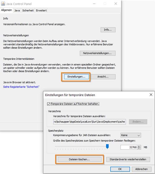Nachfolgend finden Sie eine Aufstellung der notwendigen Einstellungen in Java, die auf jedem Arbeitsplatz von Power-Usern durchzuführen sind.