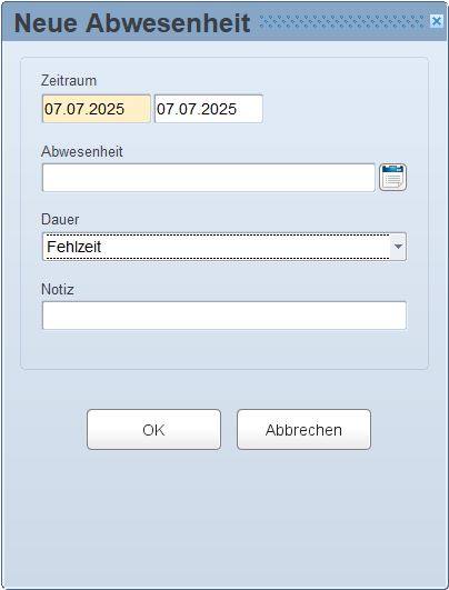 Dieses Feld öffnet die Maske für eine neue Abwesenheit.